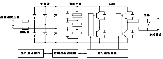 HVD3000系列高压变频器采取的拓扑结构方式为单元串联型高压变频器,其为直接高-高变换电压源型,变频器基本原理如下图2所示: