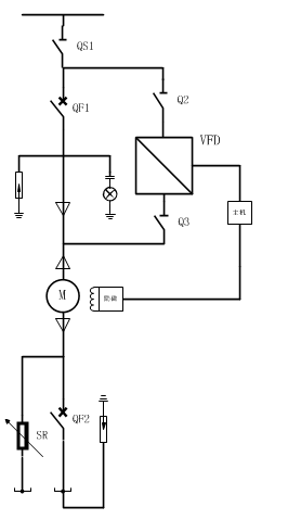 1、现场电机现有启动方式为水阻启动,水阻柜效率较低、只能实现电机的软启动的,不能实现对电机进行调速、不能进行频繁的启停操作、电解液容易受外界的影响从而降低启动质量,启动时发热较大、具有安全隐患。